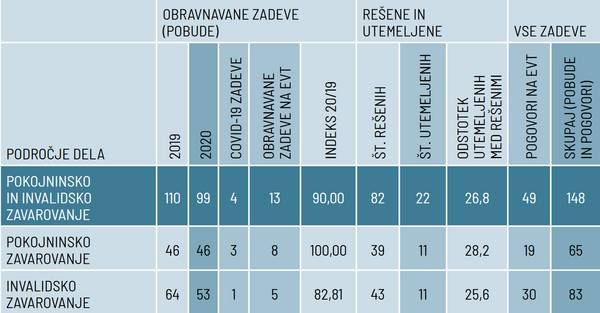 Varuh je obravnaval pobude z enako vsebino kot v letu 2019 in sicer ukinitev invalidnine, višina dodatka za pomoč in postrežbo, dolgotrajnost odločanja ZPIZ, način dela ZPIZ, predvsem izvedenskih organov in invalidskih komisij.