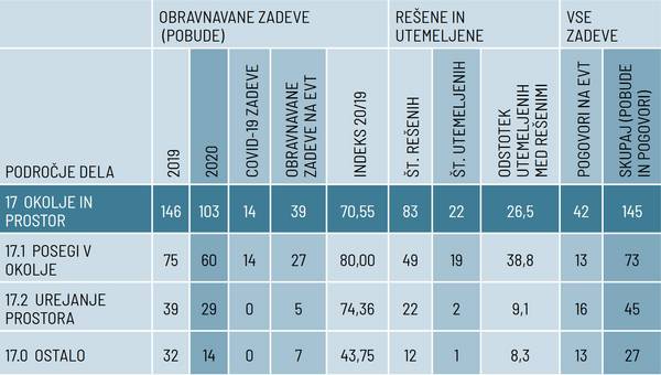 Število pobud na tem področju se je leta 2020 nekoliko zmanjšalo. Varuh je obravnaval 103 zadeve, leta 2019 pa 146 zadev. Utemeljenost pobud je bila 22 %, kar je več kot leta 2019, ko je znašala 11,7 %.