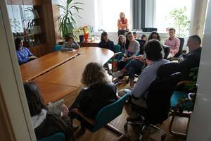Varuhinja človekovih pravic Vlasta Nussdorfer, njen namestnik Tone Dolčič in svetovalci pri Varuhu Lan Vošnjak, Brigita Urh, Robert Gačnik in Nataša Kuzmič so danes, 24. 4. 2015, na obisk sprejeli predstavnike otroškega parlamenta iz ljubljanske regije. Predstavili so jim delovanje institucije Varuha človekovih pravic RS skozi nekaj različnih poklicev svetovalcev pri Varuhu.