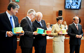 Po govoru predsednika Türka so učenci OŠ Bičevje, učenka OŠ Metlika ter dijak gimnazije Novo mesto visokim gostom konference, predsedniku države dr. Danilu Türku, predsedniku Državnega zbora dr. Pavlu Gantarju, komisarju Thomasu Hammarbergu, ministru za delo, družino in socialne zadeve dr. Ivanu Svetliku in varuhinji človekovih pravic dr. Zdenki Čebašek-Travnik, predali klobuke s sporočili o naši skupni prihodnosti, ki so jih izdelali v ponedeljkovi otroški delavnici.