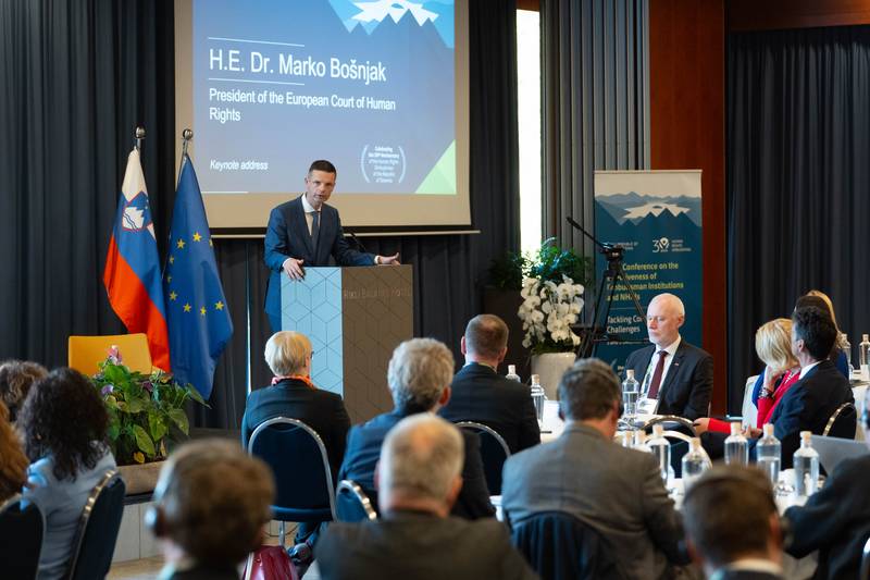 Z osrednjim govorom je zbrane nagovoril predsednik Evropskega sodišča za človekove pravice dr. Marko Bošnjak, ki se prav tako udeležuje obeh dni konference. Poudaril je ključno vlogo institucij Varuha človekovih pravic in nacionalnih institucij za človekove pravice pri zagotavljanju varstva človekovih pravic v posameznih državah, zlasti v okviru izzivov, kot so podnebne spremembe. Izpostavil je tudi pomemben prispevek teh institucij kot neodvisnih tretjih strank, ki sodelujejo v postopkih pred Evropskim sodiščem za človekove pravice.